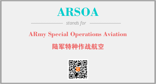 英文缩略词“ARSOA”经常作为“ARmy Special Operations Aviation”的英文缩写来使用,中文表示:“陆军特种作战航空”。本文将详细介绍英文缩写词ARSOA所代表英文单词,其对应的中文拼音、详细解释以及在英语中的流行度。此外,还有关于缩略词ARSOA的分类、应用领域及相关应用示例等。