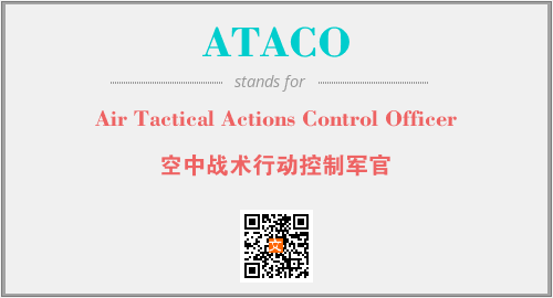 上述内容是“Air Tactical Actions Control Officer”作为“ATACO”的缩写,解释为“空中战术行动控制军官”时的信息,以及英文缩略词ATACO所代表的英文单词,其对应的中文拼音、详细解释以及在英文中的流行度和相关分类、应用领域及应用示例等。