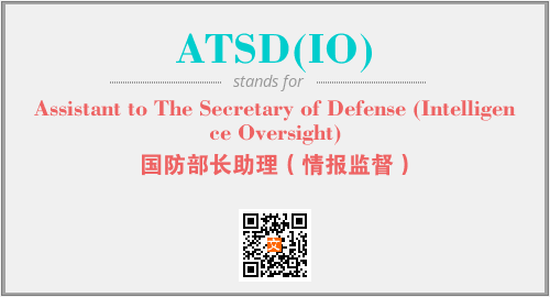 英文缩略词“ATSD(IO)”经常作为“Assistant to The Secretary of Defense (Intelligence Oversight)”的英文缩写来使用,中文表示:“国防部长助理(情报监督)”。本文将详细介绍英文缩写词ATSD(IO)所代表英文单词,其对应的中文拼音、详细解释以及在英语中的流行度。此外,还有关于缩略词ATSD(IO)的分类、应用领域及相关应用示例等。