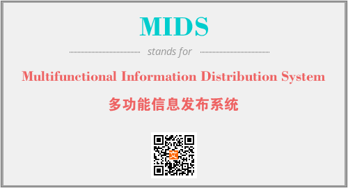 英文缩略词“MIDS”经常作为“Multifunctional Information Distribution System”的英文缩写来使用,中文表示:“多功能信息发布系统”。本文将详细介绍英文缩写词MIDS所代表英文单词,其对应的中文拼音、详细解释以及在英语中的流行度。此外,还有关于缩略词MIDS的分类、应用领域及相关应用示例等。