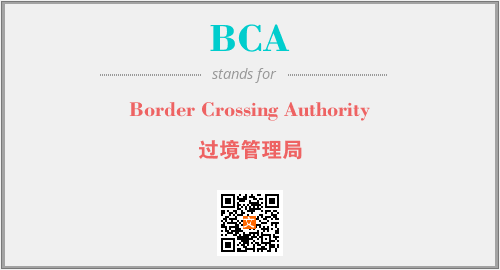 上述内容是“Border Crossing Authority”作为“BCA”的缩写,解释为“过境管理局”时的信息,以及英文缩略词BCA所代表的英文单词,其对应的中文拼音、详细解释以及在英文中的流行度和相关分类、应用领域及应用示例等。