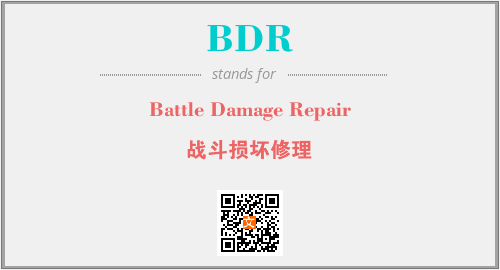 上述内容是“Battle Damage Repair”作为“BDR”的缩写,解释为“战斗损坏修理”时的信息,以及英文缩略词BDR所代表的英文单词,其对应的中文拼音、详细解释以及在英文中的流行度和相关分类、应用领域及应用示例等。