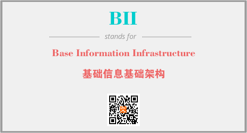 英文缩略词“BII”经常作为“Base Information Infrastructure”的英文缩写来使用,中文表示:“基础信息基础架构”。本文将详细介绍英文缩写词BII所代表英文单词,其对应的中文拼音、详细解释以及在英语中的流行度。此外,还有关于缩略词BII的分类、应用领域及相关应用示例等。