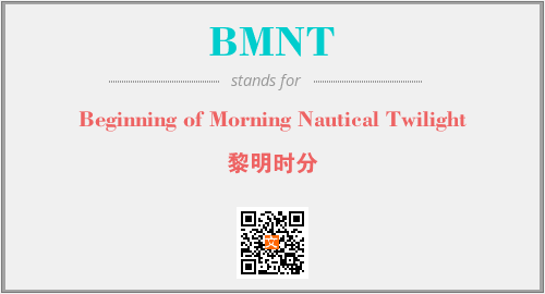 以上为Beginning of Morning Nautical Twilight英文缩略词BMNT的中文解释,以及该英文缩写在英语的流行度、分类和应用领域方面的信息。
