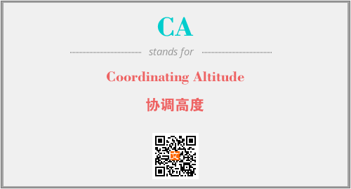 上述内容是“Coordinating Altitude”作为“CA”的缩写,解释为“协调高度”时的信息,以及英文缩略词CA所代表的英文单词,其对应的中文拼音、详细解释以及在英文中的流行度和相关分类、应用领域及应用示例等。
