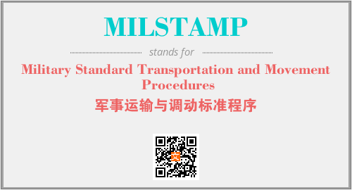上述内容是“Military Standard Transportation and Movement Procedures”作为“MILSTAMP”的缩写,解释为“军事运输与调动标准程序”时的信息,以及英文缩略词MILSTAMP所代表的英文单词,其对应的中文拼音、详细解释以及在英文中的流行度和相关分类、应用领域及应用示例等。