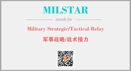 英文缩略词“MILSTAR”经常作为“Military Strategic/Tactical Relay”的英文缩写来使用,中文表示:“军事战略/战术接力”。本文将详细介绍英文缩写词MILSTAR所代表英文单词,其对应的中文拼音、详细解释以及在英语中的流行度。此外,还有关于缩略词MILSTAR的分类、应用领域及相关应用示例等。