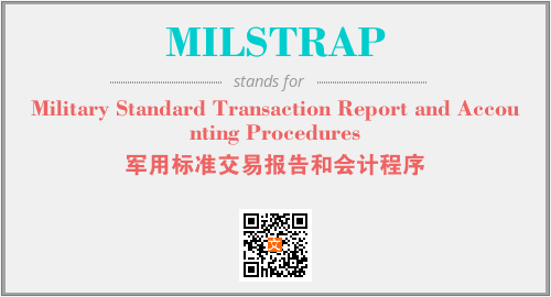 英文缩略词“MILSTRAP”经常作为“Military Standard Transaction Report and Accounting Procedures”的英文缩写来使用,中文表示:“军用标准交易报告和会计程序”。本文将详细介绍英文缩写词MILSTRAP所代表英文单词,其对应的中文拼音、详细解释以及在英语中的流行度。此外,还有关于缩略词MILSTRAP的分类、应用领域及相关应用示例等。