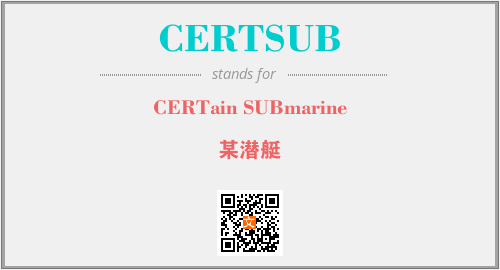 英文缩略词“CERTSUB”经常作为“CERTain SUBmarine”的英文缩写来使用,中文表示:“某潜艇”。本文将详细介绍英文缩写词CERTSUB所代表英文单词,其对应的中文拼音、详细解释以及在英语中的流行度。此外,还有关于缩略词CERTSUB的分类、应用领域及相关应用示例等。