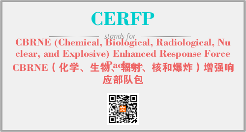 上述内容是“CBRNE (Chemical, Biological, Radiological, Nuclear, and Explosive) Enhanced Response Force Package”作为“CERFP”的缩写,解释为“CBRNE(化学、生物、辐射、核和爆炸)增强响应部队包”时的信息,以及英文缩略词CERFP所代表的英文单词,其对应的中文拼音、详细解释以及在英文中的流行度和相关分类、应用领域及应用示例等。