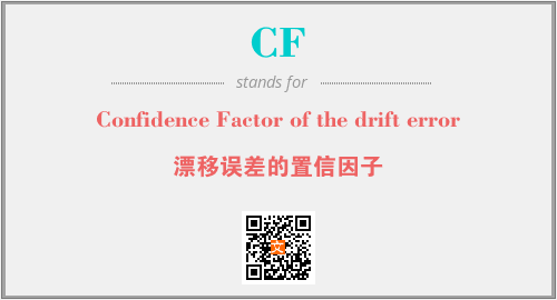 上述内容是“Confidence Factor of the drift error”作为“CF”的缩写,解释为“漂移误差的置信因子”时的信息,以及英文缩略词CF所代表的英文单词,其对应的中文拼音、详细解释以及在英文中的流行度和相关分类、应用领域及应用示例等。
