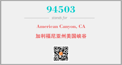 上述内容是“American Canyon, CA”作为“94503”的缩写,解释为“加利福尼亚州美国峡谷”时的信息,以及英文缩略词94503所代表的英文单词,其对应的中文拼音、详细解释以及在英文中的流行度和相关分类、应用领域及应用示例等。
