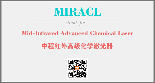 上述内容是“Mid-Infrared Advanced Chemical Laser”作为“MIRACL”的缩写,解释为“中程红外高级化学激光器”时的信息,以及英文缩略词MIRACL所代表的英文单词,其对应的中文拼音、详细解释以及在英文中的流行度和相关分类、应用领域及应用示例等。