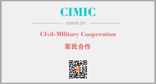 英文缩略词“CIMIC”经常作为“CIvil-MIlitary Cooperation”的英文缩写来使用,中文表示:“军民合作”。本文将详细介绍英文缩写词CIMIC所代表英文单词,其对应的中文拼音、详细解释以及在英语中的流行度。此外,还有关于缩略词CIMIC的分类、应用领域及相关应用示例等。