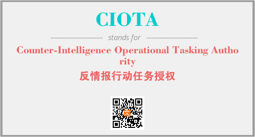 上述内容是“Counter-Intelligence Operational Tasking Authority”作为“CIOTA”的缩写,解释为“反情报行动任务授权”时的信息,以及英文缩略词CIOTA所代表的英文单词,其对应的中文拼音、详细解释以及在英文中的流行度和相关分类、应用领域及应用示例等。