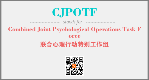 英文缩略词“CJPOTF”经常作为“Combined Joint Psychological Operations Task Force”的英文缩写来使用,中文表示:“联合心理行动特别工作组”。本文将详细介绍英文缩写词CJPOTF所代表英文单词,其对应的中文拼音、详细解释以及在英语中的流行度。此外,还有关于缩略词CJPOTF的分类、应用领域及相关应用示例等。