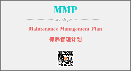 英文缩略词“MMP”经常作为“Maintenance Management Plan”的英文缩写来使用,中文表示:“保养管理计划”。本文将详细介绍英文缩写词MMP所代表英文单词,其对应的中文拼音、详细解释以及在英语中的流行度。此外,还有关于缩略词MMP的分类、应用领域及相关应用示例等。