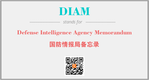 上述内容是“Defense Intelligence Agency Memorandum”作为“DIAM”的缩写,解释为“国防情报局备忘录”时的信息,以及英文缩略词DIAM所代表的英文单词,其对应的中文拼音、详细解释以及在英文中的流行度和相关分类、应用领域及应用示例等。