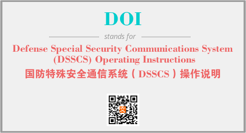 上述内容是“Defense Special Security Communications System (DSSCS) Operating Instructions”作为“DOI”的缩写,解释为“国防特殊安全通信系统(DSSCS)操作说明”时的信息,以及英文缩略词DOI所代表的英文单词,其对应的中文拼音、详细解释以及在英文中的流行度和相关分类、应用领域及应用示例等。