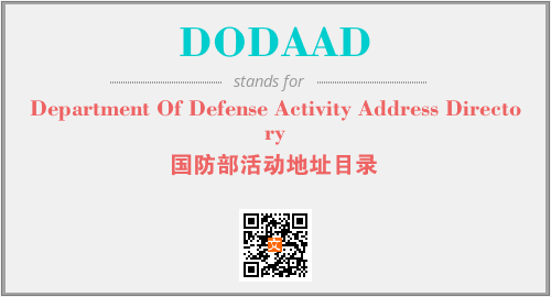 英文缩略词“DODAAD”经常作为“Department Of Defense Activity Address Directory”的英文缩写来使用,中文表示:“国防部活动地址目录”。本文将详细介绍英文缩写词DODAAD所代表英文单词,其对应的中文拼音、详细解释以及在英语中的流行度。此外,还有关于缩略词DODAAD的分类、应用领域及相关应用示例等。