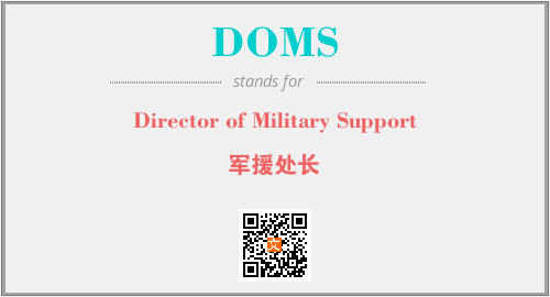 上述内容是“Director of Military Support”作为“DOMS”的缩写,解释为“军援处长”时的信息,以及英文缩略词DOMS所代表的英文单词,其对应的中文拼音、详细解释以及在英文中的流行度和相关分类、应用领域及应用示例等。