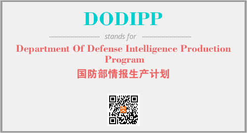 上述内容是“Department Of Defense Intelligence Production Program”作为“DODIPP”的缩写,解释为“国防部情报生产计划”时的信息,以及英文缩略词DODIPP所代表的英文单词,其对应的中文拼音、详细解释以及在英文中的流行度和相关分类、应用领域及应用示例等。