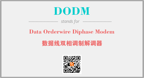 上述内容是“Data Orderwire Diphase Modem”作为“DODM”的缩写,解释为“数据线双相调制解调器”时的信息,以及英文缩略词DODM所代表的英文单词,其对应的中文拼音、详细解释以及在英文中的流行度和相关分类、应用领域及应用示例等。