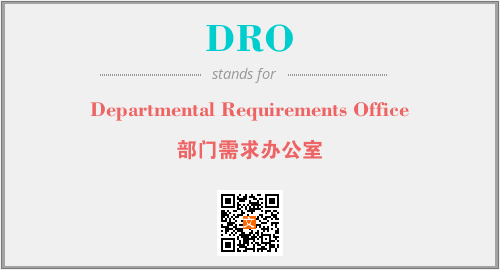 英文缩略词“DRO”经常作为“Departmental Requirements Office”的英文缩写来使用,中文表示:“部门需求办公室”。本文将详细介绍英文缩写词DRO所代表英文单词,其对应的中文拼音、详细解释以及在英语中的流行度。此外,还有关于缩略词DRO的分类、应用领域及相关应用示例等。