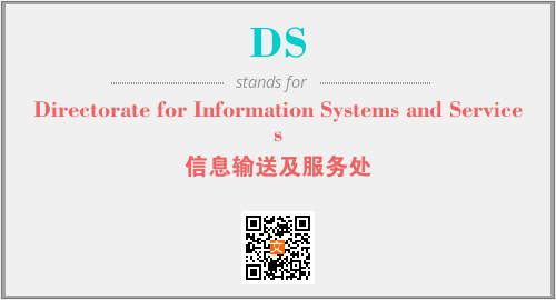 上述内容是“Directorate for Information Systems and Services”作为“DS”的缩写,解释为“信息输送及服务处”时的信息,以及英文缩略词DS所代表的英文单词,其对应的中文拼音、详细解释以及在英文中的流行度和相关分类、应用领域及应用示例等。