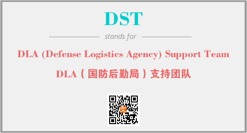 英文缩略词“DST”经常作为“DLA (Defense Logistics Agency) Support Team”的英文缩写来使用,中文表示:“DLA(国防后勤局)支持团队”。本文将详细介绍英文缩写词DST所代表英文单词,其对应的中文拼音、详细解释以及在英语中的流行度。此外,还有关于缩略词DST的分类、应用领域及相关应用示例等。