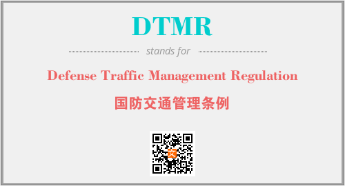 上述内容是“Defense Traffic Management Regulation”作为“DTMR”的缩写,解释为“国防交通管理条例”时的信息,以及英文缩略词DTMR所代表的英文单词,其对应的中文拼音、详细解释以及在英文中的流行度和相关分类、应用领域及应用示例等。