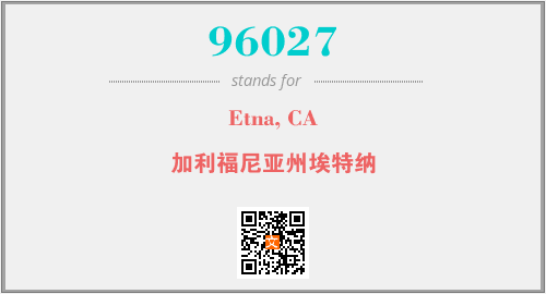 上述内容是“Etna, CA”作为“96027”的缩写,解释为“加利福尼亚州埃特纳”时的信息,以及英文缩略词96027所代表的英文单词,其对应的中文拼音、详细解释以及在英文中的流行度和相关分类、应用领域及应用示例等。