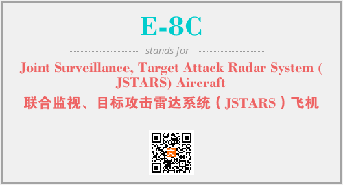 英文缩略词“E-8C”经常作为“Joint Surveillance, Target Attack Radar System (JSTARS) Aircraft”的英文缩写来使用,中文表示:“联合监视、目标攻击雷达系统(JSTARS)飞机”。本文将详细介绍英文缩写词E-8C所代表英文单词,其对应的中文拼音、详细解释以及在英语中的流行度。此外,还有关于缩略词E-8C的分类、应用领域及相关应用示例等。