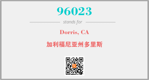 上述内容是“Dorris, CA”作为“96023”的缩写,解释为“加利福尼亚州多里斯”时的信息,以及英文缩略词96023所代表的英文单词,其对应的中文拼音、详细解释以及在英文中的流行度和相关分类、应用领域及应用示例等。