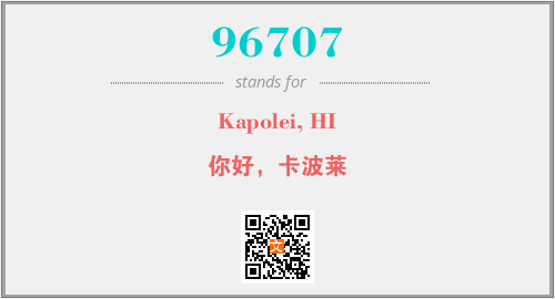 上述内容是“Kapolei, HI”作为“96707”的缩写,解释为“你好,卡波莱”时的信息,以及英文缩略词96707所代表的英文单词,其对应的中文拼音、详细解释以及在英文中的流行度和相关分类、应用领域及应用示例等。