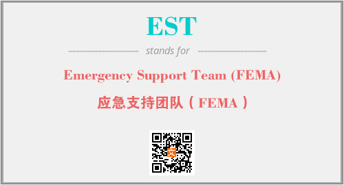 上述内容是“Emergency Support Team (FEMA)”作为“EST”的缩写,解释为“应急支持团队(FEMA)”时的信息,以及英文缩略词EST所代表的英文单词,其对应的中文拼音、详细解释以及在英文中的流行度和相关分类、应用领域及应用示例等。
