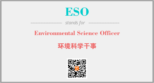 英文缩略词“ESO”经常作为“Environmental Science Officer”的英文缩写来使用,中文表示:“环境科学干事”。本文将详细介绍英文缩写词ESO所代表英文单词,其对应的中文拼音、详细解释以及在英语中的流行度。此外,还有关于缩略词ESO的分类、应用领域及相关应用示例等。