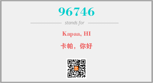 上述内容是“Kapaa, HI”作为“96746”的缩写,解释为“卡帕,你好”时的信息,以及英文缩略词96746所代表的英文单词,其对应的中文拼音、详细解释以及在英文中的流行度和相关分类、应用领域及应用示例等。