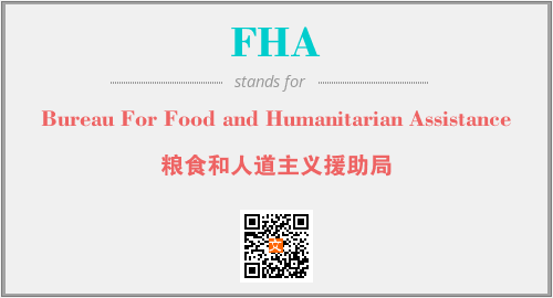 上述内容是“Bureau For Food and Humanitarian Assistance”作为“FHA”的缩写,解释为“粮食和人道主义援助局”时的信息,以及英文缩略词FHA所代表的英文单词,其对应的中文拼音、详细解释以及在英文中的流行度和相关分类、应用领域及应用示例等。