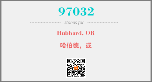 上述内容是“Hubbard, OR”作为“97032”的缩写,解释为“哈伯德,或”时的信息,以及英文缩略词97032所代表的英文单词,其对应的中文拼音、详细解释以及在英文中的流行度和相关分类、应用领域及应用示例等。