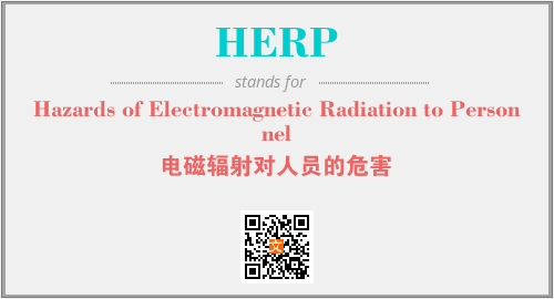 上述内容是“Hazards of Electromagnetic Radiation to Personnel”作为“HERP”的缩写,解释为“电磁辐射对人员的危害”时的信息,以及英文缩略词HERP所代表的英文单词,其对应的中文拼音、详细解释以及在英文中的流行度和相关分类、应用领域及应用示例等。