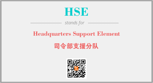 英文缩略词“HSE”经常作为“Headquarters Support Element”的英文缩写来使用,中文表示:“司令部支援分队”。本文将详细介绍英文缩写词HSE所代表英文单词,其对应的中文拼音、详细解释以及在英语中的流行度。此外,还有关于缩略词HSE的分类、应用领域及相关应用示例等。