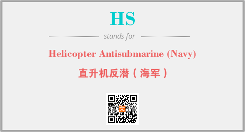 英文缩略词“HS”经常作为“Helicopter Antisubmarine (Navy)”的英文缩写来使用,中文表示:“直升机反潜(海军)”。本文将详细介绍英文缩写词HS所代表英文单词,其对应的中文拼音、详细解释以及在英语中的流行度。此外,还有关于缩略词HS的分类、应用领域及相关应用示例等。