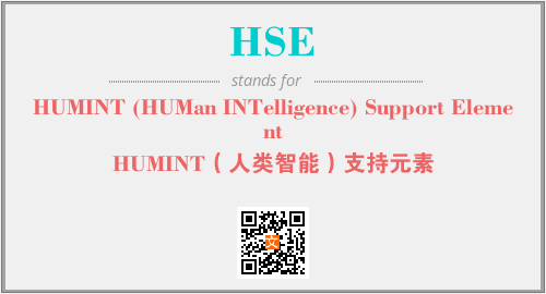 以上为HUMINT (HUMan INTelligence) Support Element英文缩略词HSE的中文解释,以及该英文缩写在英语的流行度、分类和应用领域方面的信息。