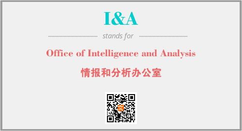 上述内容是“Office of Intelligence and Analysis”作为“I&A”的缩写,解释为“情报和分析办公室”时的信息,以及英文缩略词I&A所代表的英文单词,其对应的中文拼音、详细解释以及在英文中的流行度和相关分类、应用领域及应用示例等。