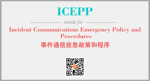 上述内容是“Incident Communications Emergency Policy and Procedures”作为“ICEPP”的缩写,解释为“事件通信应急政策和程序”时的信息,以及英文缩略词ICEPP所代表的英文单词,其对应的中文拼音、详细解释以及在英文中的流行度和相关分类、应用领域及应用示例等。