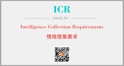 英文缩略词“ICR”经常作为“Intelligence Collection Requirements”的英文缩写来使用,中文表示:“情报搜集要求”。本文将详细介绍英文缩写词ICR所代表英文单词,其对应的中文拼音、详细解释以及在英语中的流行度。此外,还有关于缩略词ICR的分类、应用领域及相关应用示例等。