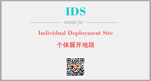上述内容是“Individual Deployment Site”作为“IDS”的缩写,解释为“个体展开地段”时的信息,以及英文缩略词IDS所代表的英文单词,其对应的中文拼音、详细解释以及在英文中的流行度和相关分类、应用领域及应用示例等。