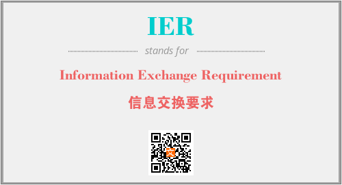 英文缩略词“IER”经常作为“Information Exchange Requirement”的英文缩写来使用,中文表示:“信息交换要求”。本文将详细介绍英文缩写词IER所代表英文单词,其对应的中文拼音、详细解释以及在英语中的流行度。此外,还有关于缩略词IER的分类、应用领域及相关应用示例等。