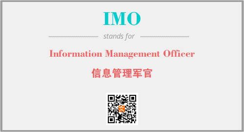 英文缩略词“IMO”经常作为“Information Management Officer”的英文缩写来使用,中文表示:“信息管理军官”。本文将详细介绍英文缩写词IMO所代表英文单词,其对应的中文拼音、详细解释以及在英语中的流行度。此外,还有关于缩略词IMO的分类、应用领域及相关应用示例等。
